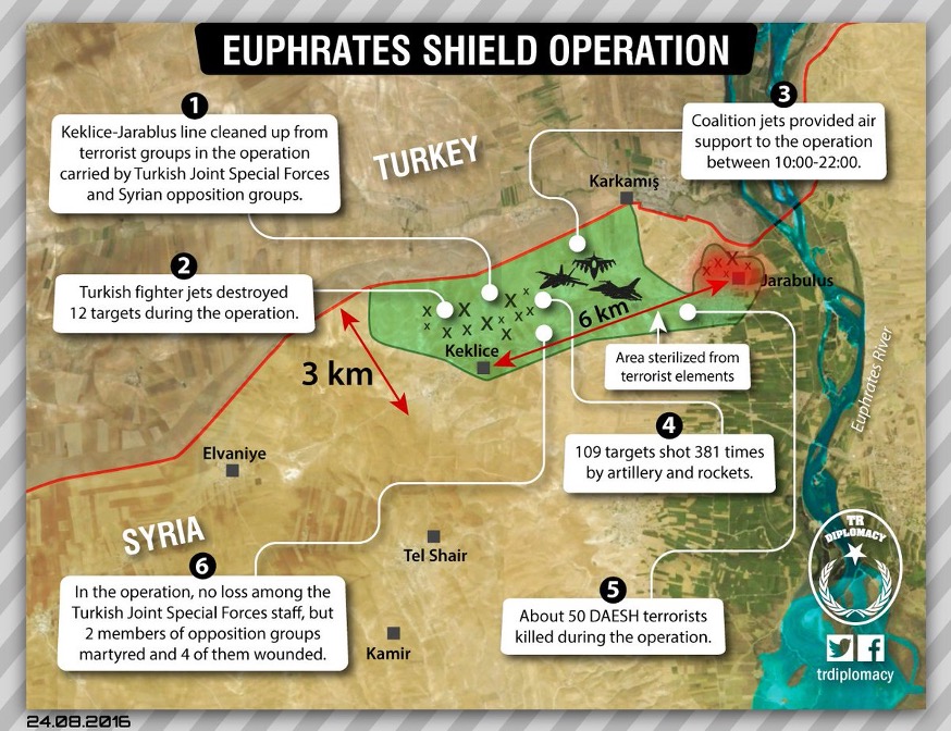The military operation was launched on the base of alliances and support of “the local ally” which is Free Syrian Army (FSA).[1] In that regard, Turkish Military Forces conducted the operation with the support of actors which had detailed local knowledge. Moreover, these actors operated the process in a certain harmonization. According to Yeşiltaş, Seren and Özçelik,